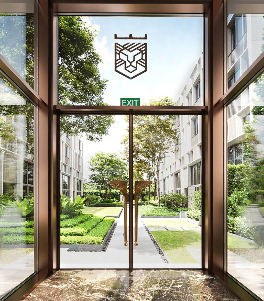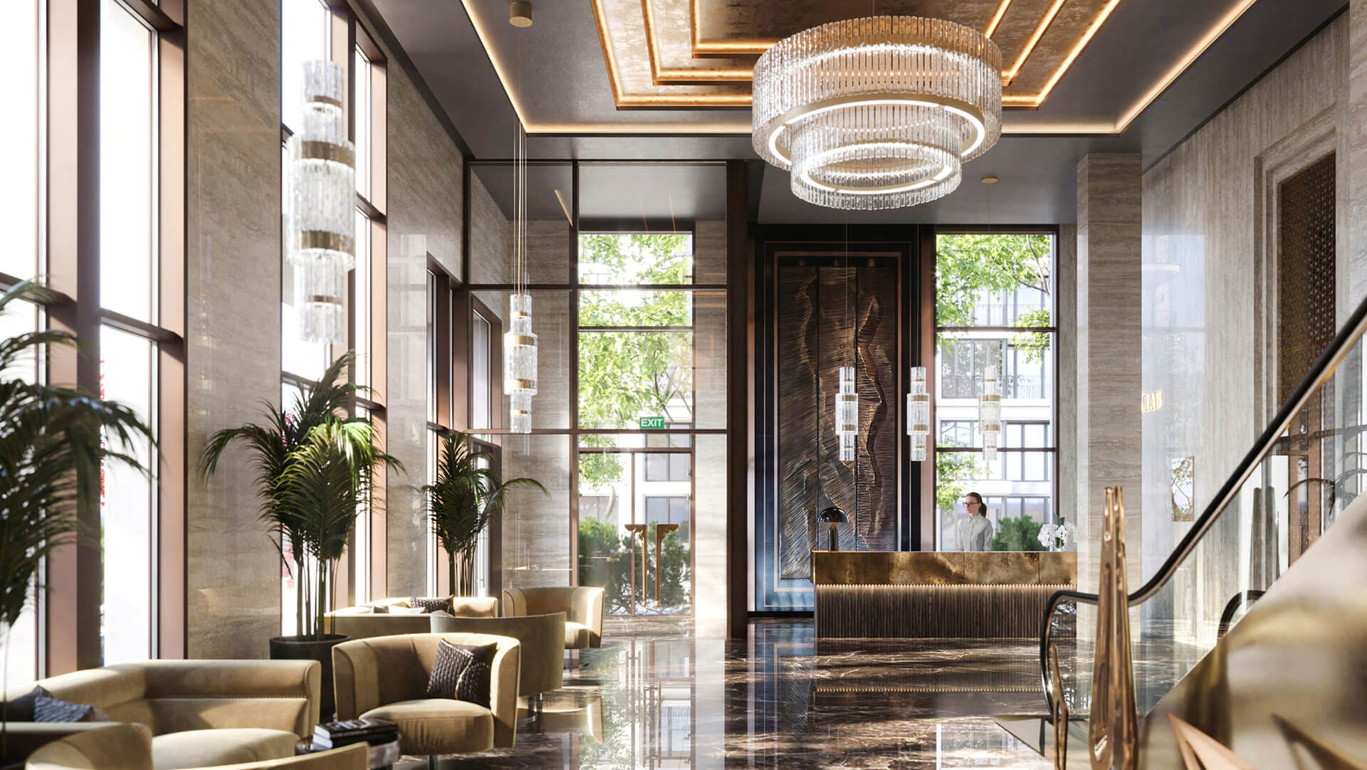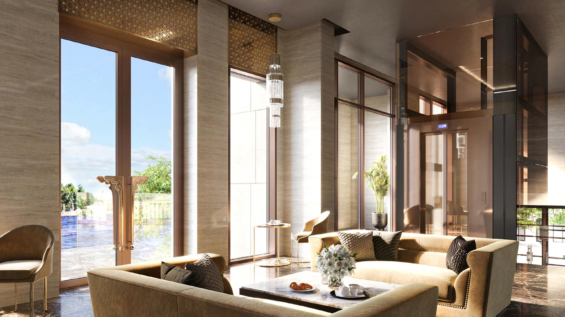 Каждое лобби оборудовано зонами ожидания, ресепшн, а также лаунж-пространствами для жителей и гостей. Предусмотрены системы видеонаблюдения, безопасный доступ и отдельные помещения для хранения детских колясок и велосипедов. Высокие потолки и панорамные окна делают помещение светлым и представительным.